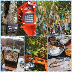 こんばんは😃 台風が近づいてきて心配です💦 お盆は貴船の川床へ😃 川の音や虫の音色とか癒され、そうめん食べたり、ゆったりした時間でした🍃 青モミジも鑑賞してきました☺️🍁🍃 途中カフェで立ち寄ったお店に飾ってた テラリウムが素敵だったので、 左下にアップしていますね☺️💜🧡