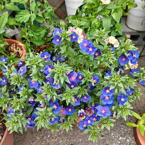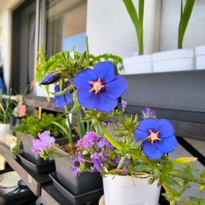 ♡ルリハコベ(アナガリス ブルーインプレッション)♡ ルリハコベ(瑠璃繁縷、学名:Anagallis foemina)はサクラソウ科ルリハコベ属の一年生草本(APG植物分類体系ではヤブコウジ科に分類される)。朱赤の花をつける同属のアカバナルリハコベ(Anagallis arvensis L.)の亜種A. a. foeminaとされることもある。園芸植物としても普及しており属名カナ読みのアナガリスの名で流通している。 暖地の海岸沿いを好む。ユーラシア大陸原産で日本では紀伊半島、四国、九州、伊豆七島、琉球諸島などに分布。全世界に帰化しており帰化植物の可能性がある。 2年ぐらい前にGSの投稿でみて一目惚れ🤩ずっと探していましたがなかなか出会わず諦めていたら今春苗🌱でお迎え出来ました🙌 花が咲きはじめると一斉に咲き1日で落下する1日花のようでもう咲きはじめて1ヶ月以上咲いてます🥰 雨☔に濡らしたくないので雨☔の日は屋根のある場所に移動し過保護に育てています🤭 🏷️水曜日は水色