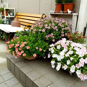 前回の強風で枝がたくさん折れてしまった サフィニア ももいろハートさん🎵 ようやくお花が咲きだした😭 台風の影響ないといいな🙏