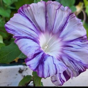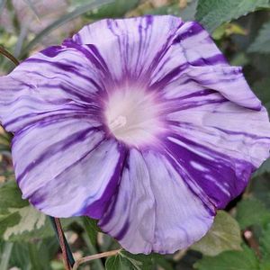 おはようございます👋😃☔ 💜巨大輪あさがお 💠江戸むらさき💜 今朝5時30分、 既に開花してました🎆~♪ 思った程…🤔 普通の朝顔が6cm位 直径2cm大きいと言う事は… 中心から1cm大きいと言う事…🙄 初めての巨大輪あさがお、想像よりは大きく無かったですね💦 普通サイズの朝顔と並んで咲いてくれる日を待ってます😊♪