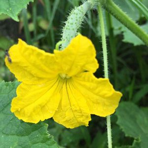 キュウリです🌱 花と実が楽しめるっていいですね〜😊