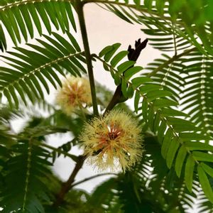 おはようございます。 今日も暑さが厳しい1日になってますね。 観葉植物のネムノキに花が咲きました🌼 初めて見る花で、暑さにバテていたところ少し元気を分けてもらったような気持ちになりました😊