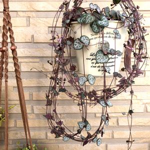 4月にupしたハートカズラが70cm位にまで成長•*¨*•.¸¸♬*タラ〜ンと垂れ下がってる姿が可愛いけど、伸びた先をクルッと丸めてなんちゃってリースの出来上がり〜ʚ♥ɞ ʚ♡ɞʚ♥ɞ ʚ♡ɞ(*´艸`*)フフ 全体とアップを📸✨して又、元のタラ〜ンに戻しました🤗