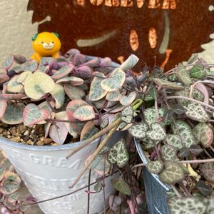 ㊤&㊧ 【セロペギア属 ウッディ バリエガータ】 Ceropegia woodii f. variegata Ceropegia woodii cv. 'Lady Heart' 別名 レディ ハート ハート カズラ(錦) ㊨ 【セロペギア属 ウッディ】 Ceropegia woodii 別名 ハート カズラ 去年、フォロワーさんの クリスさんに教えていただいた、 「🏷8/10はハートの日」に 参加させていただきますね マタモヤ1ニチオクレ、スイマセン(;-ω-)ノ にわかに浮上した マイブームのハートカズラ💚 画像のように吊り下げるのが 王道ですが、絡まるのが難点 また吊り下げタイプだと、 冬越しに室内に避難したくても うちはカーテンレールしか 掛けておく場所が無くて(T_T) そんな理由で最近は、 取っ手付きの琺瑯(ホーロー)の コランダーに植替えています 取っ手があると、夏場は屋外で 吊り下げが出来ますから便利 コランダーと言えばオシャレですが、 要は水切りする為のボウル🥣 台所にあるザルで可愛らしく 鉢にアレンジができないか?と、 現在模索中です(๑•̀ㅂ•́)و✧♡