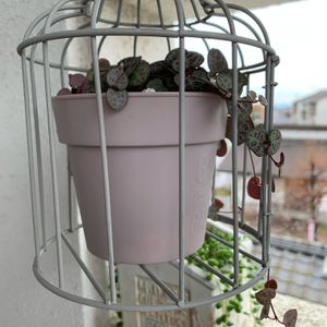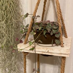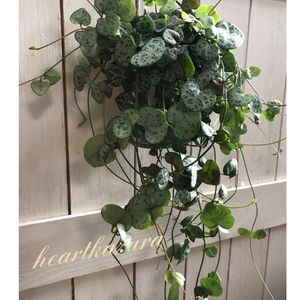 去年の11月4日にUPしたハートカズラがこんなにモリモリになったので、吊して📸 ハート型の葉っぱが大きいものだと3cmくらいになってる💚(*´艸`*) 新芽も出てきて元気に成長中•*¨*•.¸¸♬*