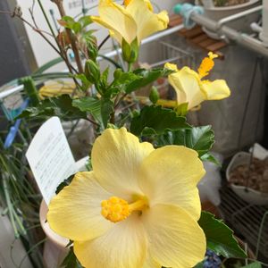 伊良湖岬のハイビスカス アイスレモン🍋 6月28日(水)にお迎えしました 前回の投稿が9月30日(土) 我が家のハイビスカスの2023年の営業は10月末をもって終了しました😓 冬越し対策もあって株を半分以下にしました😵💦 ここ最近は日中は暖かい日もあります 年内は10℃越えの予想の名古屋です😃 室内で避難中ですけど気温の高い日には日向ぼっこもしてあげてます😃 その影響もあって今朝咲いてくれました🎵😃