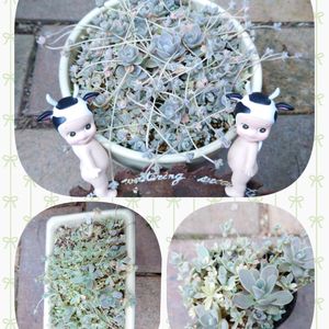 今度はさわやかに子持ち蓮華錦で、 🏷牛の日🐮 🏷錦の日✨ もぅ参加するcow🐄 💬返信遅れてるのに連投 もぅ🐮ヾ(_ _*)ハンセイ・・・スミマセン 3年前かな? イベントでやまもちさんから2号ポットでgetした子持ち蓮華錦さん✨ 頑張って増やして👈👇4角鉢へ ギュウギュウになり、☝️の丸鉢へ その中のとれた小さな1株が知らない間に👇👉2号ポットにギュウギュウ デモなかなか最初は増えなかった😿 ネットで培養土を多めにするといいと見つけ、 そうすると増えてきました😻 デモ調子こいて雨ざらしにして放置してたら ちょっと蒸れちゃった🙀 ほんとに最近の蒸し暑さは嫌んなるわ💦 今日も雨が降るという予報と 曇りの予報があってどっち❔ 実際はピーカンになったりアチュイ…(*﹃*;) 歯医者さんの予定だったから、ビニールかけて行ったけど、蒸れやしないかo(;-_-;)oドキドキ はぁ、疲れる💦