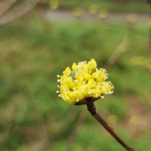 雨の中、桜の写真を撮って歩いていたら、偶然、サンシュユを見つけました。 嬉しかったです。🤩
