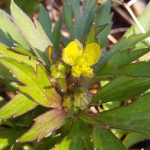 ケキツネノボタン (毛狐の牡丹) キンポウゲ科 キンポウゲ属 毛が生えてます😅 黄色の5枚の花弁 不揃いな鋸歯 ✋😵✋なので教えて戴きました🙋 池の周りに咲いていました!ここには10日ぐらい行ってなかったでしょうか? 春が楽しみです😉