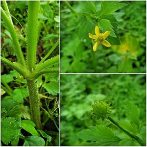 近くの田んぼシリーズ🎵 あぜ道に咲く黄色い花🎵 花びらがピッカピカですので、キンポウゲの仲間だなぁと…… 最初はタガラシかと思いました。緑の丸っこいのがそうかなと。 でも葉っぱが違うので、ケキツネノボタンですね。 オナモミみたいな実も可愛らしく⤴️ キンポウゲシリーズは好きなのでテンション上がりました⤴️⤴️⤴️ 毛狐の牡丹…… 葉っぱの形がボタンに似てることから、キツネが化けたボタンということでこんな名前だそうです💦 有毒で、食べると食中毒を起こす💣 夏くらいまでダラダラ花を咲かせてくれるみたいです🎵
