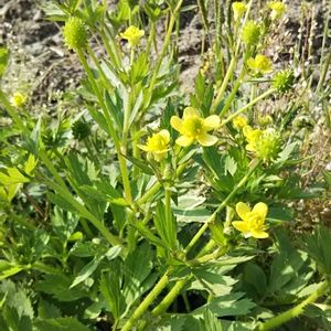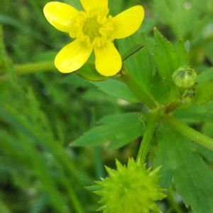 キツネノボタンの仲間わかりづらいですね 実の棘がキツネノボタンほどクルっとしていなくて葉っぱの形が細身 多分ケキツネノボタン