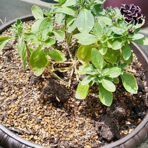 ❶栄養系コリウスとペチュニア花衣 黒真珠の寄植え🪴 コリウスの葉が急に大きく成長して来たので、この小さい鉢ですとバランスが悪いので大きい鉢に全部植え直ししようと思います。 栄養系コリウスは気温が高くなると成長が早いです。 挿し穂で増やそうと思いますが今年は暑すぎて失敗しそうです😅 ❷2年目の西洋マツムシソウがいつの間にか咲いてました。 スマホで撮影すると花が赤く見えますが実際は、もっと暗いワインレッドです🌿 この植物は高温多湿が苦手なので余り水を与えない方が良く咲くみたいです🌿