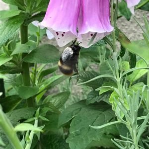 朝のラベンダーにはミツバチ🐝 ぶんぶん🎵 日本ミツバチ減ってきているっていうから わが家の小さな花壇でも お役に立ててるかな😊👍 足に花粉を貯めながら あちこち忙しく飛んでます🐝 頑張れ、頑張れ😊