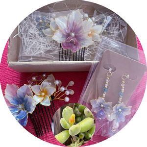 コチレドンの仔猫に~ 昨日つぼみ発見(☆∀☆)キラーン! もぉ咲いちゃったかな┃•́ )ジー まだ見てないって言うか・・・ すっかり忘れててもぉ夜・・・ 結婚式に着ける髪飾りを作家さんにお願いして作ってもらった~❀.*・゚ あたしは髪の毛をバッサリ切っちゃったから…片側上げて髪飾り(左)を着けるから~片側の青バージョン❢❣ お嫁ちゃんのお母さんにもプレゼント(上) 少し見にくいけど(*' ')*, ,)ペコリ 後ろを半分上げて髪飾りするから~ 左右対象の紫バージョン❢❣ あたしはピアスも作ってもらった(右) (*≧艸≦)フフ✧*. どちらもお互いの色をMIXしてもらっう デザインにしてもらった⤴⤴⤴⤴⤴⤴