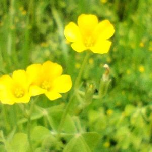 オッタチカタバミ (おっ立ち片喰、学名: Oxalis dillenii) ずっと気になったままだったけど、 ついに、庭のあちこちに少しずつ増えてる黄色いカタバミの「君の名は。」って調べてみました😁スキナノ💛 ニックネームみたいな名前ですが、和名の本名なんですね📛 この『オッタチカタバミ』と普通の『カタバミ』の違いは、主に茎の立ち上がり方だそうです。 『オッタチカタバミ』は、茎が地表を這うのではなく、立ち上がって成長し、 一方、『カタバミ』は地表を這うように成長するという性質があるとのこと。 しかも、『タチカタバミ』という、やや立ち上がった(中腰?🤣)カタバミの一種もあるそうです。 ややこしや、ややこしや😅