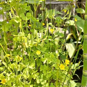 もしかしてこれが オッタチカタバミ! 海から野鳥公園の池につながる水路の際、 柵で近寄れない、あれはカタバミの花 撮影場所からは1mほど離れていますが 草丈は50㌢近くありそう いつか会えると思っていたが こんなに近くにいたなんて