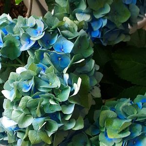 我が家の玄関前のお花達!! 𓂃𓂂𖡼.𖤣𖥧𓈒◌܀𖥧𖧧 ˒˒. ①次男のプレゼント紫陽花🩵 綺麗なブルーからちょっと変わった色になってきました🙌 ここからまだ変化するのでしょうね🩵💚 ②いつもの秋色アジサイ💚 やっと色付いてきました👌 ③サツキ♥ 真っ赤に咲き誇っています🙆🏻 3枚投稿です 横へスワイプお願いしますね