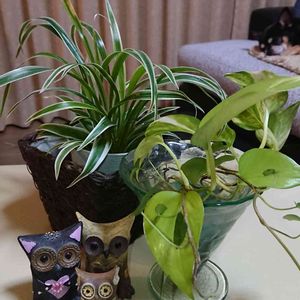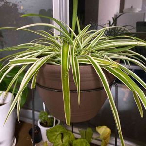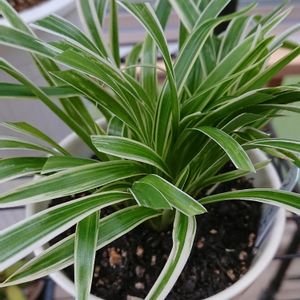シャムオリヅルラン また夜になっての投稿に😂 柔らかい葉で何ともいえない優しい風情があります 葉の先っぽが枯れてきたら✂️でその部分を斜めカットするといいようです