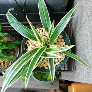 株分けして増えた小さな外斑オリヅルラン。 新芽の根元が二つに折り畳まれて出てくるところがとても折鶴っぽいです💗 わさわさの大株だとこの状態を目にすることができなかったので、嬉しい🎵 斑の入り方も、なかなか美しいです😆