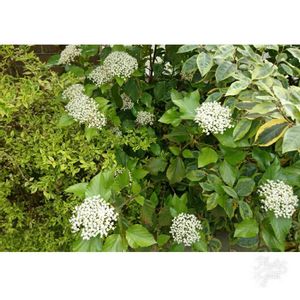 次々と咲き出す小さな花の集まり コバノガマズミ 咲き進むに連れて真っ白になります。 あまり良い香りとはいえないですが、 小さな虫たちは大好きな模様!