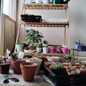 🌍🌪️台風🌏🌪️ 今日は台風に備えて室内に避難させましたが改めてみてみるとこんなに増えていたとは… 今年の5月か6月に最初の寄植えセット購入からまだ3〜4か月で😅 まだまだ増えそう。 置き場所考えないと。