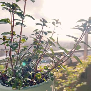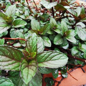 🌿🍀🌿💧 雨あがりの葉っぱ ミントって 花が咲くんだな…(そりゃそうか)