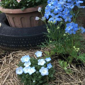 とっても可愛い色だったのでブルーガーデンに植えました。 青のネモフィラの中に少し薄いブルーの子を見つけたのでお持ち帰り😆 モリモリになるといいな❤️