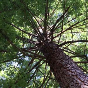 ✽センペルセコイア✽ ヒーサーの森の森の中、紅葉谷の辺りのセンペルセコイア。 6500万年〜200万年前頃の地球に広く生えていた「生きた化石」の一つだそうです。 世界で最も背が高くなる樹木で原産地のカリフォルニア州には110メートルもの樹木があり、ひとの60倍以上の高さになるそうです。 下から見上げると幹の太さの割には枝が細くて、放射線状に枝を伸ばしていました。なのでこの辺りは真っ暗で気温も低いのです。モミジもまだ真っ青。そしてなだらかな起伏だけど歩いてきて暑くなる頃なので、ひんやりして心地よいのです。 頼もしく日陰を作ってくれるその下にはシダやギボウシ、クリスマスローズが点在していました。