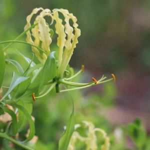 ✽黄色いグラリオサ✽ ローズガーデンの片隅に俯いて咲いていた、グラリオサ。 咲いている姿を見かけたのは初めてで、引き込まれました。 その咲いている姿を見ていて… 蕾からどんな風に綻んでこんな風に素敵に咲くのかしら❔…と興味が湧きました。 いつか庭で見てみたい♪ ヒーサーの森にて