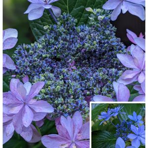 紫陽花💠ダンスパーティ 元はピンクの紫陽花 赤くなる紫陽花の肥料を使ってみました 変わらず赤紫に😅 裏側の花色はブルーに😱 科学変化が起ったのかなぁ… 2種類のお花が楽しめてラッキー👍✨ 30cmに切り戻したのが肥料のおかげで170cmに👀! これまたビックリです(笑)