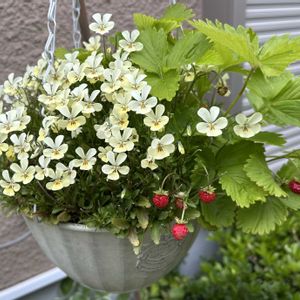 今年の春はよく降りますね😰 今日は曇りなのでガーデンリフォームの続きをやらなくちゃ😊 ①ネモフィラ プラチナスノー 地植えだったのですが、ガーデンリフォームで邪魔になったので鉢植えにしている間に満開になりつつあります😅 今年はこのまま終わってしまいそう💦 ②ワイルドストロベリー ゴールデンアレキサンドリア 実が赤く色づいてきました🎵 いちばん熟してそうなのを食べてみた😊 う〜ん、イマイチ🤣 これからずっと実ができるそうなので、ためておいてジャムにしよう😅