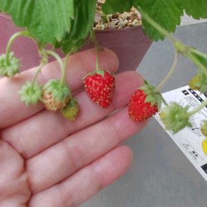 ワイルドストロベリー🍓 甘い品種で、安いイチゴくらいの甘さ こどものおつまみ用に、玄関近くで栽培してます👧 小さくて重みがないので、実が地面につきにくく楽ちん😆