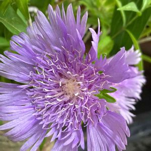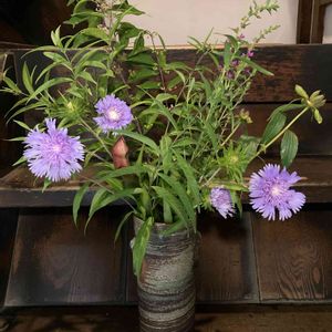 蔵の前に飾ったストケシア! 別名 瑠璃菊