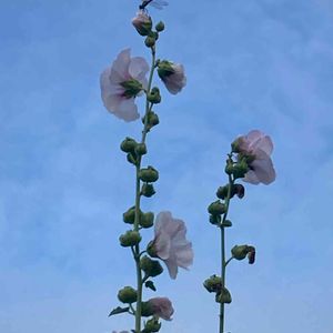毎朝ひとつずつ咲く朝顔😀 何故かまだひとつずつ。 本日はバッタの訪問客あり‼️