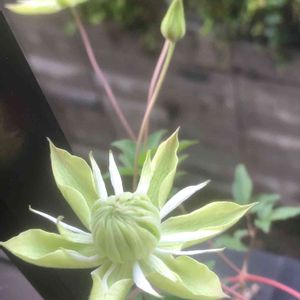 あれ? 白糸クレマチス。 買った時とは違う姿を見せる。 まだ開花前。 フェンスの外向きに沢山の蕾。 残念ながら見る人おらず💦