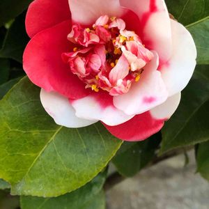 雅発見❣️ 昨日は暖かく今日は大荒れ。 風邪ひかないように気をつけねば。 歩いていたらこの椿に ハッとする。 好き嫌いは別として、 存在感ありました。