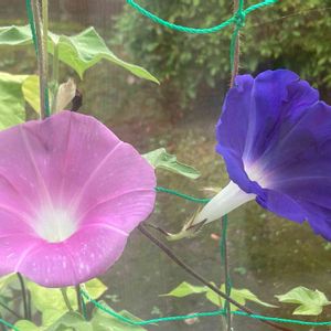 ポツポツと咲く朝顔。 今日は2色仲良く😊