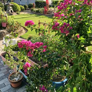 ブーゲンビリアです。庭に出るとおはようと 待っていてくれます。 こんなに大きくなって しまい、花が終わったら 切り込みます。