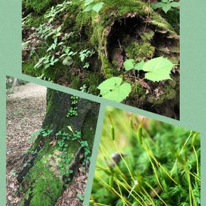 朽ちた木にコケも数多く見られます 緑は癒されますね!でも太陽も大好き 今は暑すぎるけど