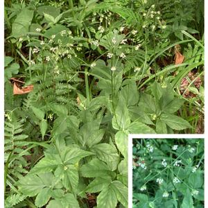 名前が分かりません 花枝は米印のように セリ科? 自然を生かした公園 入り口からしばらくは石畳の坂道 水吐け土砂流出防止でしょうか 降りは疲れた足にきつい 再度10月に訪問しイワミツバと分かりました