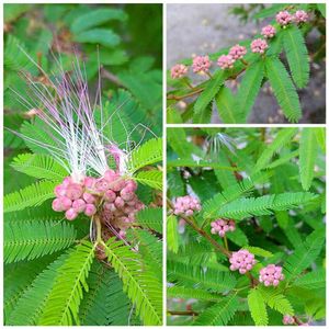 『ネムノキ💗🌿』 上→→合歓木 ネムノキ マメ科ネムノキ属 落葉高木 下→→常盤合歓 トキワネムノキ 常緑低木 マメ科ベニゴウカン属 花や葉がそっくりですが 属種が違うふたつのネムノキです💗🌿