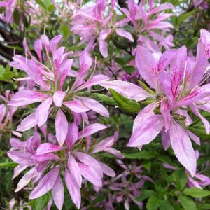 モチツツジ(黐躑躅) ツツジ科ツツジ属 落葉(半落葉)低木 葉や茎がネバネバし、触れると指が貼り付くことから、餅あるいは鳥もち(黐)に擬えてモチツツジと名付けられた。 5月7日 場所:新城市