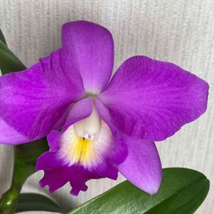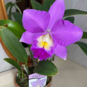 Lc Cosmo-Aloha レリオカトレア コスモアロハ 今年2回目の開花💕 一輪だけど思わぬサプライズだったわ🤗 とても香りが良くて、もう少し開いたら部屋中にほんのり香ってきます。 でも葉っぱに穴あけたのだれだぁ〜😡 出て来いっ‼️成敗してやるっ‼️