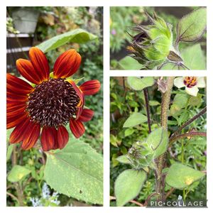 今日のお花ヒマワリ🌻 何回も投稿している種からの ルージュロイヤル 咲いているのはもう散りかけていますが 蕾が次々と上がってきています🪴