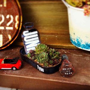 オイル缶をリメイク♪ グレー×イエロー缶♡ 男前な寄せ植えが完成しました♪ イベント用に持って行きまーす♡