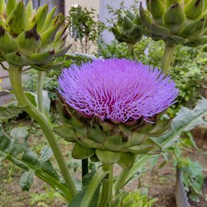 またまた…ですが😅 アーティチョークの様子が変わってきました。 蕾が増え、次は茎が伸び出しました⤴🌱 と言ってもまだ60cmくらい。毎日変化を眺めるには程よい丈です。 少し蕾が広がりはじめたかな😋💦花まで我慢です👍