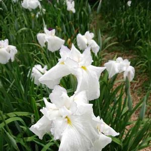 直立不動の白い花菖蒲🌼 早咲きともなれば品種が当然違うでしょうが、ここの今年の花菖蒲園はまだ完全に出来上がっていない為、ネームプレートが付けられていません😱 中頃になればOKかも🙆🏻👌✨