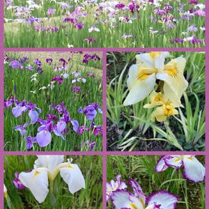 土砂降りの雨の中、花しょうぶまつり🎶にやって来ました😆 412品種、14万株の花しょうぶが綺麗に咲いています✨✨ 花しょうぶは、江戸時代に栽培が盛んになり、多くの品種が生み出されたそうです❣️ こちら横須賀しょうぶ園では、江戸系、肥後系、伊勢系、米国系に分類しているそうです❣️