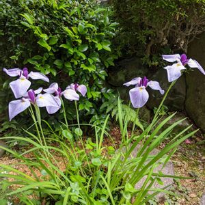 朝降っていた雨☔もあがり日中は晴れてきました✨ 江戸系花菖蒲💚町娘💜が今年も咲き出しました🤗