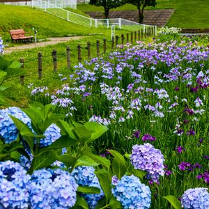 二宮のせせらぎ公園の花菖蒲‼️ 色とりどりのハナショウブが綺麗でした😍💕 紫陽花も咲いてました💠